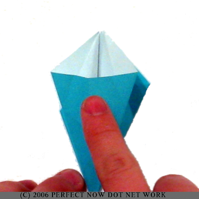Pull down the inside flap to Petal Fold. Repeat for the other three sides.