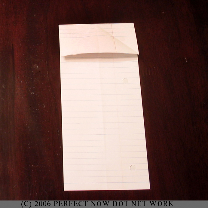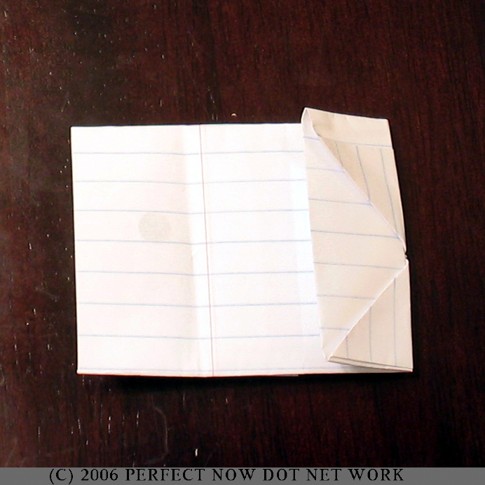 Fold the paper in half by taking the right vertical edge to the left vertical edge.