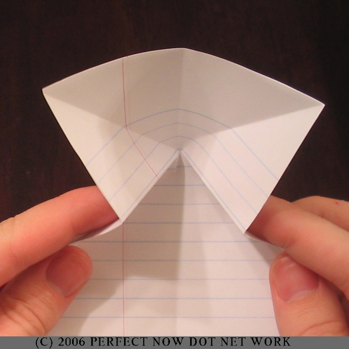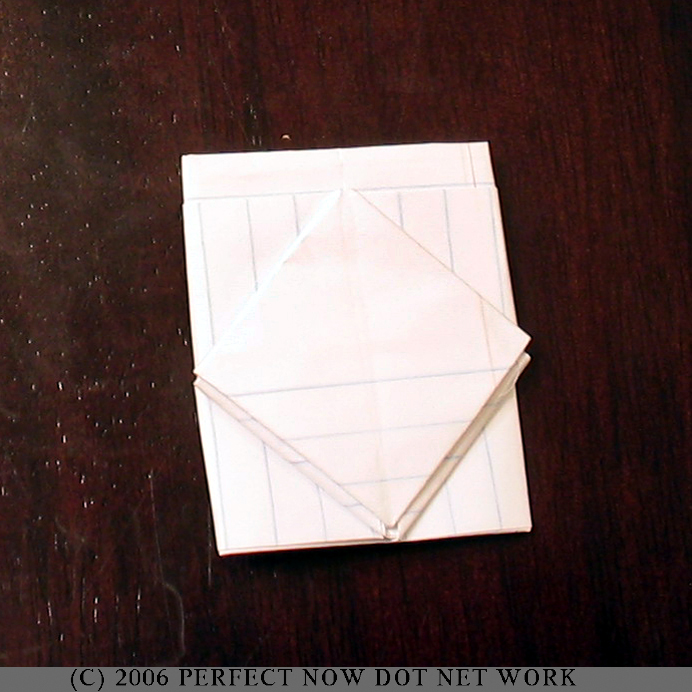 Turn over. Mountain fold the top so that you make a crease through the center of the folds made in steps two and three. Unfold.